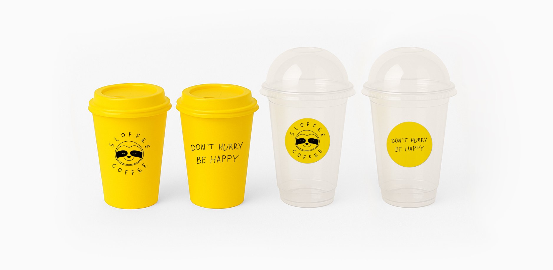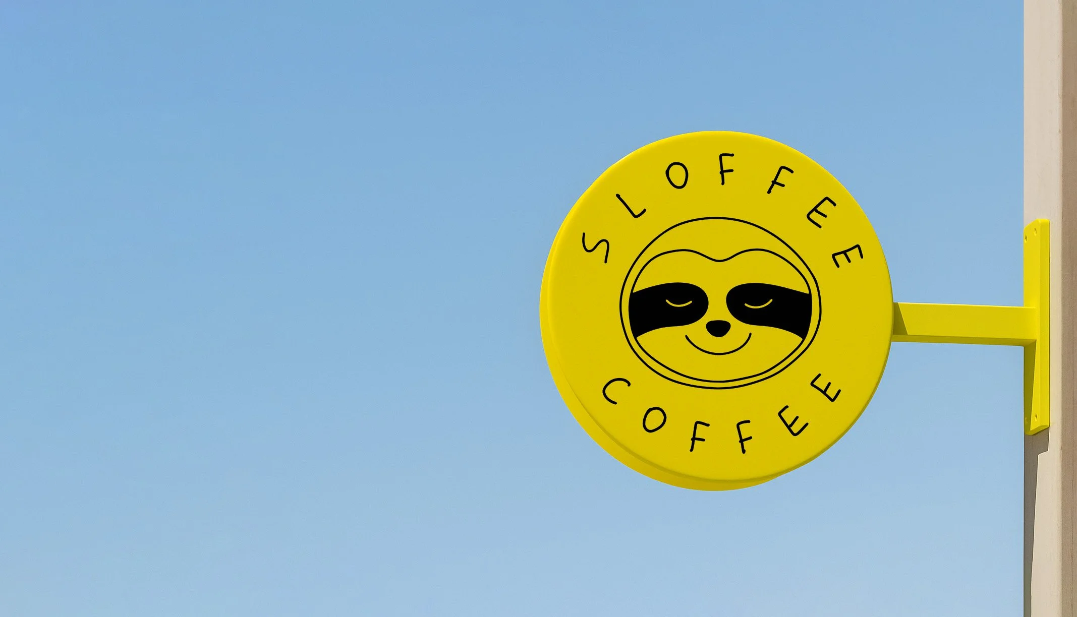 The brand is built around the idea of slow living, symbolised by a sloth, positioning the café as a place to pause and enjoy the moment. Yellow was chosen as the core colour to express warmth, happiness, and optimism. The guiding idea: No matter the weather, it’s always sunny in Sloffee Coffee. It’s a spot of good mood, calm, and everyday happiness.
